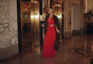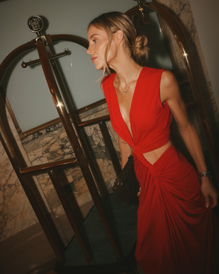 Date nights are a rare luxury these days with three littles running around, so when the chance came up, I decided to go for it. This Sid Neigum dress is perfect—it has a Grecian vibe (that will be so amazing for a summer wedding), but feels grounded in the bold red. I love that it manages to make a statement while being super soft and comfortable.