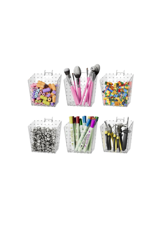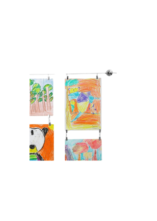 are from Target or Amazon and I did a mix of frames, finishes, and mats for an organic feel on the two gallery walls. For art and craft supplies, I stocked up at Michaels and Amazon, organizing everything in bins on a pegboard from Amazon (painted the same color as the walls.) Grouping all the art supplies by color adds an easy, curated touch. We had the desks custom built by my local carpenter and the drawer pulls and chairs came from Amazon. With everything linked here in the collage, it’s easy to recreate this look or make it your own. Happy creating!